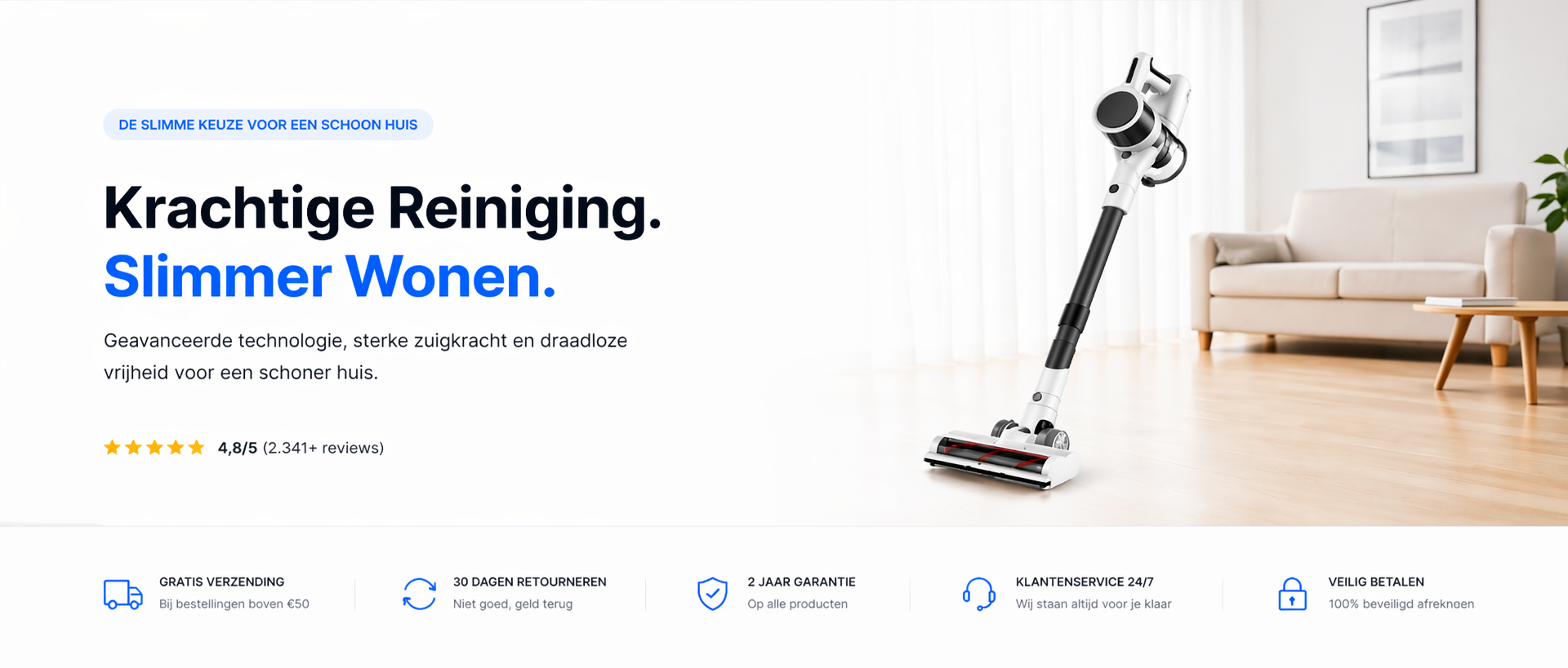 Wij combineren moderne technologie met een minimalistisch design om hoogwaardige stofzuigers toegankelijk te maken voor iedereen.
