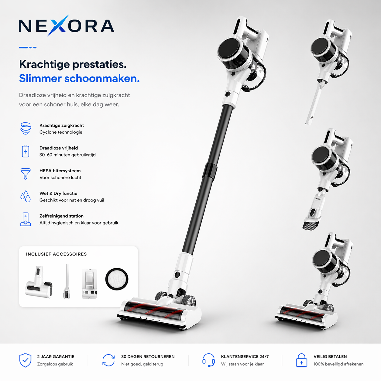 Nexora staat voor slimme, krachtige en stijlvolle reiniging.